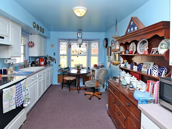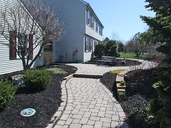 Bring Mom or just utilize the additional square footage! This area could also be the perfect spot for a pool house with full kitchen and bath. There is a full 2 story oversized detached garage with second floor - perfect for a game room. Large kitchen with stainless appliances, cherry cabinets, corian countertops, tile backsplash, pantry, desk area, and sliding doors to slate patio and backyard views. Family room with brick fireplace and gas insert, triple box window, beamed ceiling and wall to wall carpeting. Full laundry facility with separate entrance includes closet space, cabinetry, and access to the inlaw suite. There is also a half bath and additional access to the backyard. Full inlaw suite consists of master bedroom and full bath, full kitchen and living room with gas burning stove and separate entry foyer. The home is located in a lovely development with over an acre of property with public sewer. Air conditioning and heating system is less than 10 years old and the home has been well maintained. A pleasure to show!