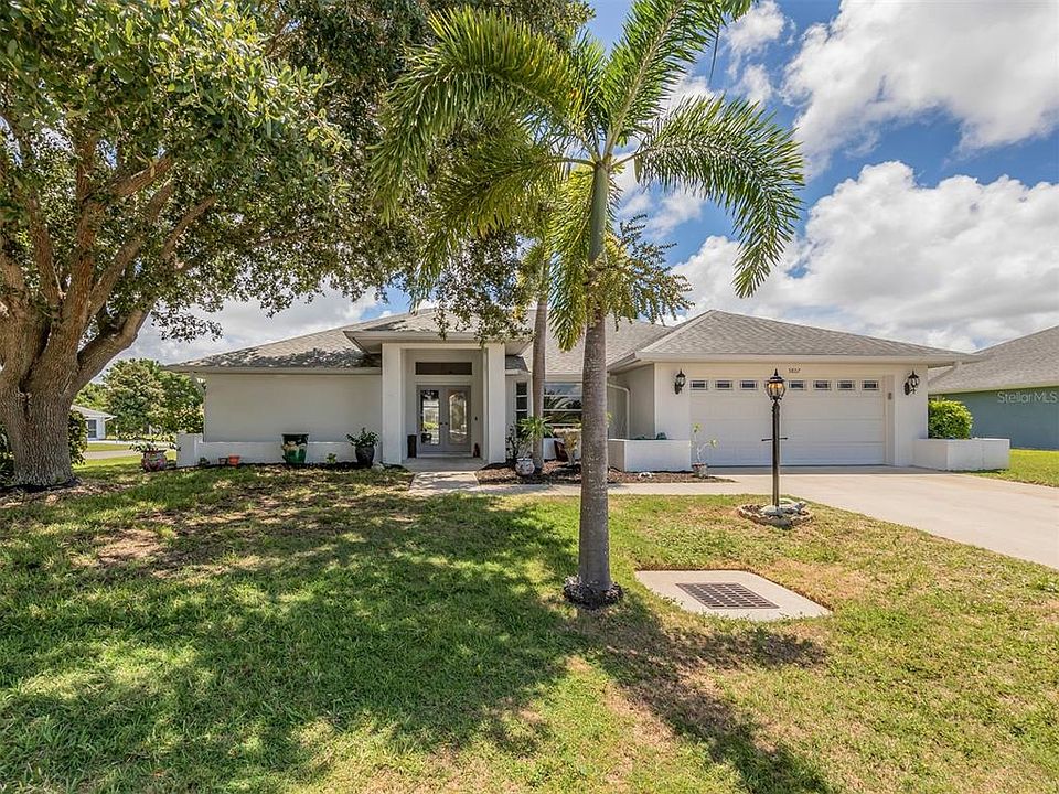 **BRAND NEW ROOF INSTALLED BY END OF NOVEMBER** Welcome home to the Beautiful Community of Gulf View Estates where all ages can enjoy Tropical living only 2 miles away from Manasota Beach. As you enter you will see the beautiful fountain that gives you a warm and relaxing feel along with the Tropical landscaping inviting you back home everyday. The community also has some Deed Restrictions with low HOA fees that help keep it clean and well maintained. NO CDD! Check out this 2,050 sq ft home situated on a beautiful corner lot. Upon entering this generous split floor plan you’ll see the brand new grey carpet that was just installed throughout the living room, hallways and 3 bedrooms. As you look ahead in your living room you’ll notice the large sliders that look out to your beautiful screened in pool and spa. On your right you’ll see your large Formal Dining room with a beautiful bay window that brings natural lighting into your home. This open floor plan has vaulted ceilings and is great for entertaining from the kitchen to the Florida Room where your guests can have a refreshing drink and relax by the fireplace. The kitchen features a large granite countertop along with a cozy breakfast nook to enjoy your morning coffee. Key features include a large Master Suite with His/Her closets that provide plenty of room to store your belongings and keep them organized. Soak up in a nice bath in your large garden tub or walk right out through your french doors to cool off in your concrete built Chlorinated in ground pool and relax in the spa after a long day. Rinse off in your outdoor shower or walk right into your guest pool bathroom. Guest bedrooms include large walk in closets for easy storage. Public water and Sewer. Hvac unit replaced in 2019. Roof replaced in 2008. Plumbing Re-Pipe done in 2019. Enjoy your water straight from the faucet with the Rain Soft system included in your home. Close to schools, shopping, restaurants and New Spring Training Home of the Brave's Stadium.