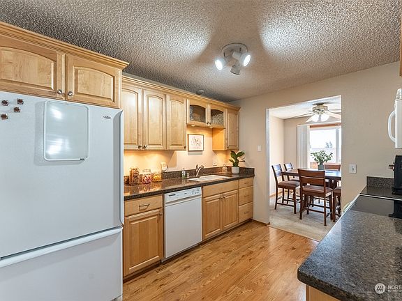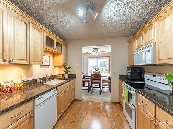 This end-unit condo is turn-key. No age restriction. It has two spacious bedrooms, one bathroom with a walk-in shower, a large Livingroom, a dining room with the slider going to the patio area. There you will have a nice view of Mount Baker. Washer and Dryer are in unit. HOA fees include water, sewer, outside maintenance and trash services. It is a short walk to downtown stores and restaurants. Come take a look!
