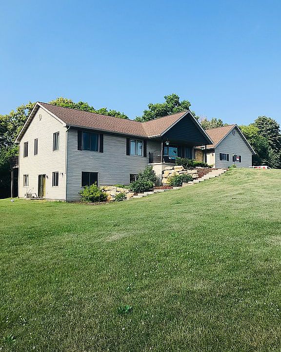 Beautiful, scenic, 4.2 acre country home is located on top of bluff on the Little Platte River. Abundant wildlife with quiet setting. Large deck and three car attached garage. Nine foot lower level ceilings with walkout from large family room. New 25 year warranty roof 2022. New flooring throughout. New landscaping. New driveway. New pellet stove in basement. Bonus room added downstairs. Chicken coop/shed built in 2018. Bathroom updates. Quiet country setting on dead end road spectacular views. SERENITY NOW