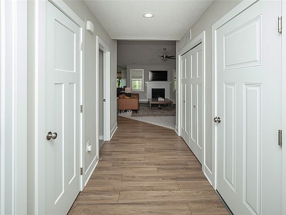 Immaculate unit town home on a slab , so zero entry with no steps . One owner home that has been well loved . As you enter you will notice the open floor plan . Front bedroom with extra deep closet , a full bath with tiled floors and LVP flooring though to living area. A fireplace to enjoy those cozy winter evenings . The kitchen has ample cupboards and beautiful quartz countertops . Dining area and a sunroom with sliders to your patio . The master suite has a 3/4 bath , double vanities and a large walk in closet. Laundry room and over sized 2 car garage , with extra room for storage .Quiet community , located close to lake , shopping , by pass . Sellers have found their home of choice .