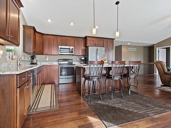 Great split 4 bedroom 3 bath ranch that shows new. No backyard neighbors. Finished basement & 3 car garage. Open kitchen & family room with fireplace & cathedral ceilings. Amish made cabinets & granite counter-tops with island. Recent extras include fenced backyard, extra added spray insulation, all new blinds, pantry cabinet, generator, extra professional landscaping & garage heater. Plenty of storage with large walk in closets. Just off walking trail.