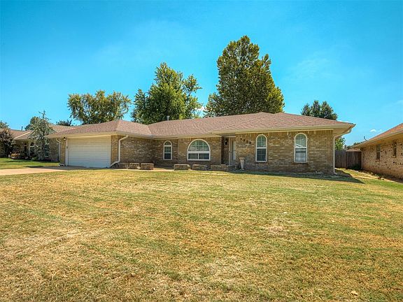 Welcome Home! This charming 4-bedroom, 2.5-bath residence is just moments from the tranquil shores of Lake Hefner. Recent updates include fresh interior paint that brightens every room, a new sewer line, updated water lines throughout, and stylish new tile flooring in the kitchen, laundry, and powder bathroom. The spacious, open floor plan is perfect for both relaxation and entertaining. The living room features a cozy fireplace flanked by built-in bookshelves, creating a welcoming atmosphere. Elegant updated arched windows and custom shutters in the living and dining areas add sophistication while filling the space with natural light. The large kitchen boasts new tile flooring, vintage bubble glass in the cabinet doors, plenty of cabinet space, and a cozy breakfast nook—ideal for family meals. The generously sized primary suite offers a peaceful retreat, complete with an en-suite bathroom featuring a shower and a spacious walk-in closet for ample storage. Designed with functionality in mind, the guest bath is conveniently positioned as a Jack-and-Jill between two secondary bedrooms, making it perfect for family or visitors. The fourth bedroom, located just off the primary suite, offers flexible options—whether as a home office, gym, or nursery—providing both privacy and versatility. Step outside to your private backyard oasis, surrounded by a privacy fence, and featuring a small storage shed for outdoor equipment. With easy access to parks, walking trails, and shopping, this home is truly a must-see!
