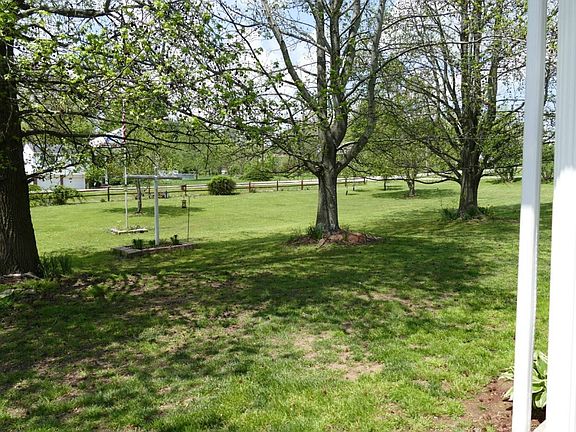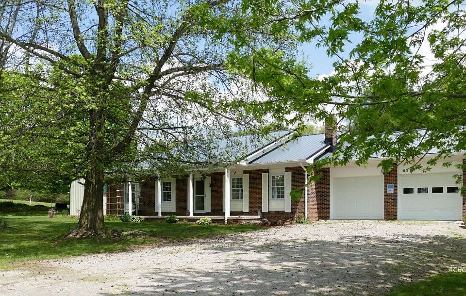 This full brick 3 bedroom ranch has a lot of something for everyone, inside and out. Sitting nicely back from the road on almost-flat 1.45 acres m/l, the pretty brick front and pillared porch give you a beautiful backdrop for seasonal decor. Inside, you get the must haves, such as a owner's suite with attached bath, spacious living room, open kitchen and dining, several walk-in closets, carpet-free floors, and laundry on the main floor. The lower level has a good start on being a finished space, with some dry-walled partitions already in place, good head room and lots of square footage. Updates include a handsome metal roof, newer heat pump furnace and AC (with backup baseboard for zone control, if you like), thermopane windows, dishwasher in 2017, and wood-style plank-look flooring. Now for the person who has all the grownup toys and projects: 2 large Amish buildings on the property set on concrete slabs have heating and air conditioning and are outfitted as an office and workshop respectively. One has extra loft storage space. But they could have any purpose: Craft annex, playroom, storage--your call. Lawn and garden equipment have their own spacious outbuilding.