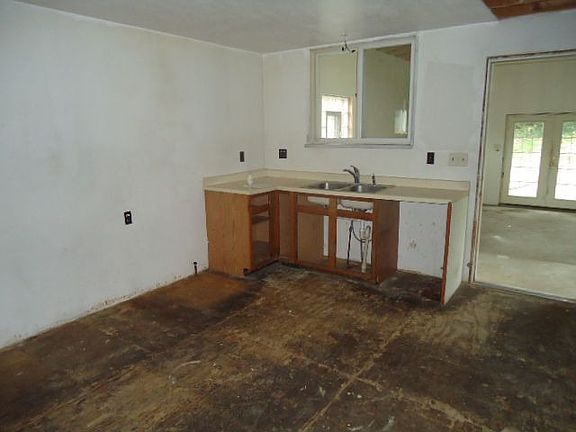 Exterior Features: Vinyl siding and an asphalt roof. Overall pretty good condition. All windows are in tact and newer. Enclosed back porch that may have been in the middle of a conversion to a room. Interior Features: Living room is in overall pretty good condition aside from the carpeting which should be replaced. Large, eat-in kitchen is unfinished with a plywood sub floor and no cabinets. Second floor has two bedrooms and a full bathroom. Bedrooms are in overall pretty good shape aside from the carpeting. Bathroom is also in pretty good shape aside from some damage to the ceramic tile floor. Full, unfinished basement houses all mechanics.
