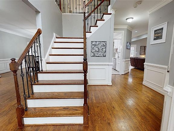 Located in the amenity-rich waterfront neighborhood of Woodlake, come prepared to fall in love with the community, convenience and charm of this great home! Roomy and level fenced backyard w/ oversized newer deck! Not your typical Woodlake floor plan! Spacious and open; bring all your oversized furniture and electronics! Oodles of natural light, thanks to the 2-story family room & foyer! Upgrades include quartz kitchen & primary bath counters, tile backsplash, hardwood floors and stairs, wrought iron bannister, flip-open gutters, new front door, new 1/2 bath vanity, updated fixtures and more! HVAC and furnace updated within the past 5 years! Enjoy miles of community-wide paved trails! Boating, fishing, events, pools, pickleball, recreation...right at your fingertips! A must see property!