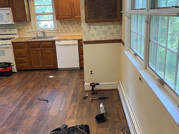 Charming Sears Vallonia Bungalow The Main level has a living room with gas fireplace, master bedroom with attached bath, 2nd bedroom and spacious kitchen with skylight, new butcher block counter tops, new ceiling fan, build in desk and new flooring. First floor bath repainted and remodeled with new flooring, toilet, sink and vanity. Upper level has two bedrooms and full bath with skylight and new flooring. Most of house is newly painted. Lots of closet space. Many windows provide ample natural lighting. Huge newly refinished 2 level deck. Off street parking. Full unfinished basement for storage and laundry room with washer & dryer. Easy access to Metro, University of Maryland, FDA and NASA Goddard. Lake Artemesia park is about 0.4 miles down a very quiet street. Take bike paths from the park to UMD campus without going on a street. Easy public transportation access with UMD and Metro bus stops at the end of the block. The house is halfway between the College Park and Greenbelt metro stations, about 1.5 miles to Greenbelt station. Metro bus direct to Greenbelt station. Walk or bike to College Park Metro station on bike paths. No Pets. No Smoking. Detached garage is not included with rental. Renter is responsible for all utilities (water, gas, and electricity). Renter will keep the grass cut and keep yard free of leaves and debris. Upon termination of the lease, renter will have all carpets professionally cleaned at renter's expense.