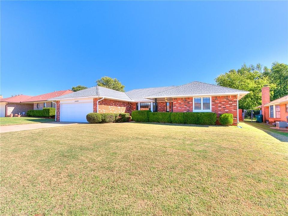 Beautiful home situated in the lovely Frolich Meadows Estates. So much space in this large four bedroom home with two full baths and a half bath off the laundry room. You'll love the second living room. It overlooks the front yard making it a perfect spot to read a book and drink your morning coffee. The flooring is newer and the roof is only a year and a half old. All the duct work has been moved to overhead. Wait until you see this backyard...it is MASSIVE. There is a shed out back and it stays along with the cute planter boxes. Well kept home close to Tinker. This is a great home, great neighborhood, schedule it today. Buyers to confirm schools.