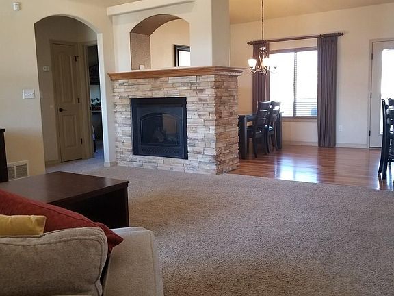 Situated in the Sawyer Ridge development, this spacious five bed, three bath home with attached three car garage offers an open concept with split bedroom design and storage galore throughout with generous sized closets and storage area in the basement. The beautifully landscaped yard greets you as you enter this well-designed home. The open living room has direct access to the kitchen and dining room, with a cozy two-way fire place separating the living and dining spaces. Both kitchen and dining room windows have custom made curtains. The kitchen offers granite counter tops and stainless-steel appliances including a double oven. The master bedroom boasts a tray ceiling and has a nice bay window with built in storage. The master also provides a walk-in closet as well an attached five-piece bath. Two additional bedrooms are on the main level with generous sized closets each. The laundry/mud room located right off the garage entrance has built in cabinets, counters and shelving. The nine-foot ceiling basement provides plenty of space for entertaining as well as two additional bedrooms, both with generous sized closets complete with double shelving. A huge storage room with built in shelves provides ample space for storing items of various sizes. A small additional room can serve as a storage room, toy room etc. in the basement. The back yard is surrounded with a stone style fence and is equipped with rock for easy maintenance. Schedule your showing today!