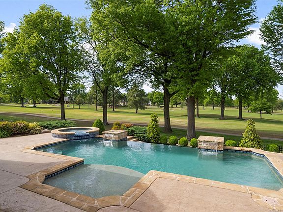 Resort style living overlooking the meticulous fairways and greens of Cedar Ridge Country Club. This exquisite home features 5 bedrooms ensuite. (Master & Guest down). Study/library, theatre room, game room w/wet bar and multi-level outdoor living w/fireplace & kitchen. Infinity pool & spa w/panoramic views. Separate outdoor bath. 5 car garage. Full home automation, storm shelter, 24 hour guard and gated security.