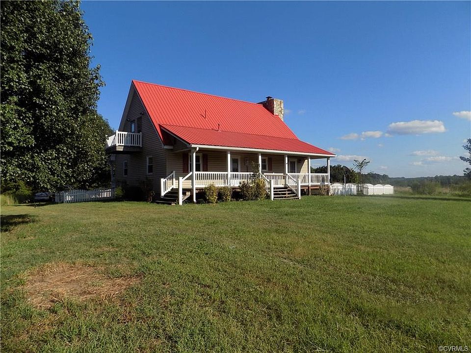 Wide open spaces!! Don't miss out on country living! This cape is located on 10+/- acres, features 3 bedrooms, 2 baths, open kitchen, great room, dining with fireplace! If you like openness then you will fall in love with this house. Full porch on front and back, balcony from master bedroom upstairs. One of the bedrooms downstairs can be used for master suite. Metal roof, detached sheds, white fence around home.