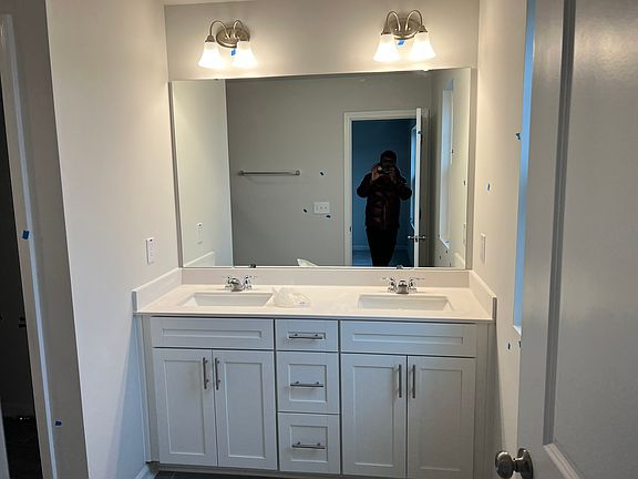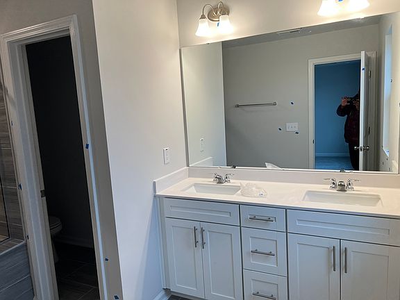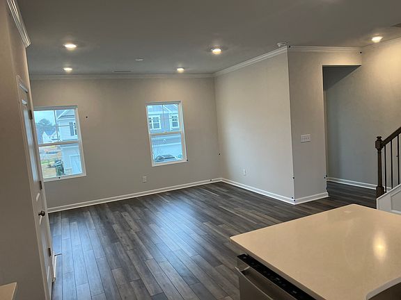 This nearly new two-story townhome at 5809 Empathy Lane in Raleigh offers a harmonious blend of modern design and functional living. Built in 2023 by Lennar, the home spans 2186 square feet and features three spacious bedrooms, two and a half bathrooms, and a versatile loft area. The open-concept main floor is illuminated by natural light, highlighting the kitchen equipped with a central island, quartz countertops, tiled backsplash, and GE stainless steel appliances. Enhanced 5-inch vinyl plank flooring extends throughout the first floor, adding to the home's contemporary appeal.