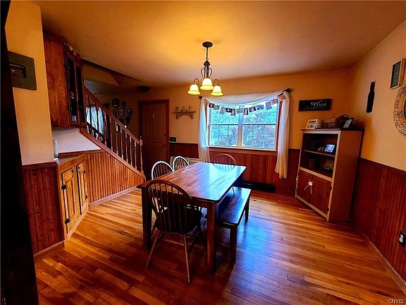 Welcome to this beautiful 3-bedroom, 2-bathroom cape cod style home in the beautiful hills of DeRuyter. You enter in the den that has natural woodwork and features an efficient pellet stove. This property offers a remodeled country kitchen with new appliances and a pantry offering plenty of storage. Living room and dinning room offer stunning hardwood floors and built-ins. and First floor bedroom has private deck that overlooks the gazebo. The 2nd floor houses 2 additional bedrooms and a full bath. Situated on 1 scenic acre, there is plenty of room to roam.