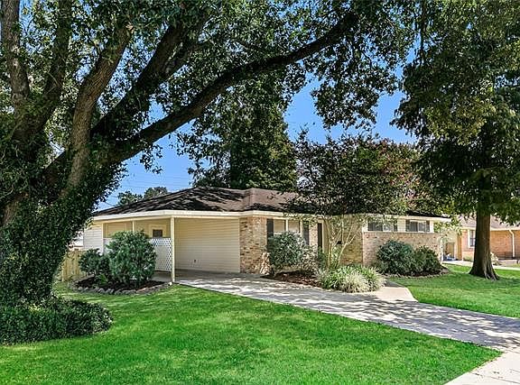 Beautifully updated four bedroom two full bath home framed by beautiful trees.Den with crown molding and wood floors.Kitchen has tile full backsplash,builtin oven,cooktop,stainless hood,breakfast bar,new fixtures and pulls;huge adjacent brfst rm with builtin shelves;master bedroom with crown molding;new baths with attractive vanities,nice laundry room with shelving;storage room at carport;patio doors leading to covered wood deck for great entertaining.Fenced yard. The work is done you just need to move in!