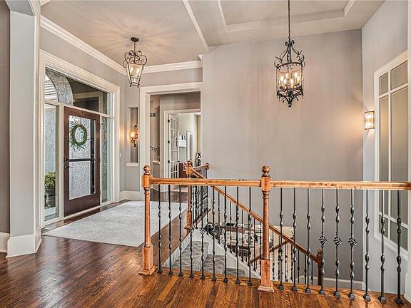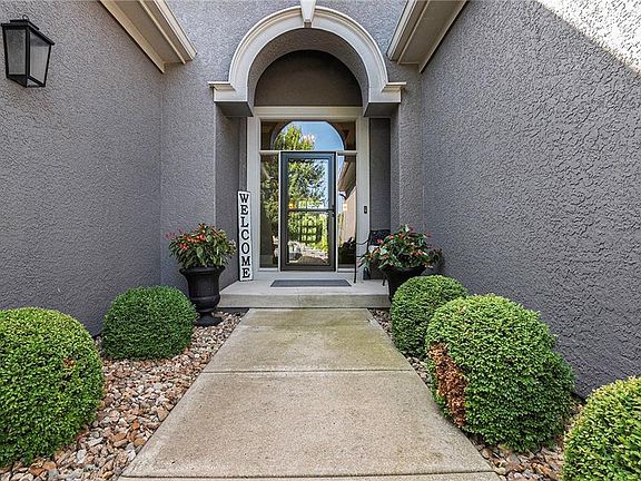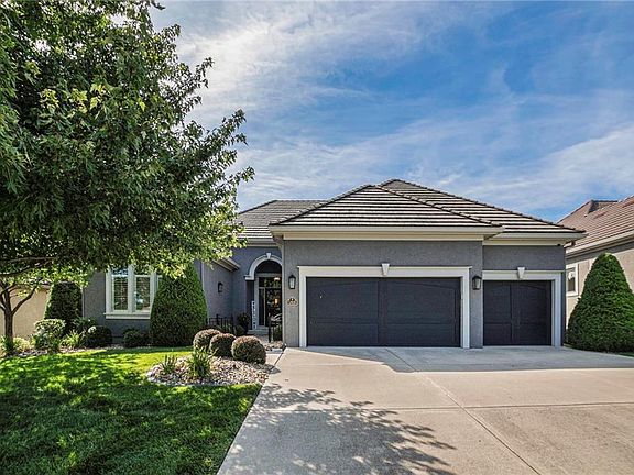 Maintenance-provided, 4 bed, 3 bath ranch/reverse 1.5 story home with gorgeous views of the Tiffany Greens Golf Course. Perfect for the folks desiring one-level living: 3 bedrooms + laundry on the main level! This layout has hardwood floors throughout the main level with large windows bringing in lots of natural light and soaring ceilings. Walk in to the updated great room with fireplace and floating shelves. This is open to the formal dining room; large kitchen with granite island, eating area and walk-in pantry. Sit outside and enjoy coffee or a cocktail on your expanded, covered deck off the main level. Primary bedroom & en-suite have been completely updated. New hardwood floors in bedroom. Bathroom updates include new flooring, free-standing soaker tub, new sinks, lighting, mirrors, ceiling fan and comfort-height toilet. Phenomenal finished lower level doubles your entertaining space with a family room complete with full wet bar level. Your guests will love their private bedroom downstairs with a full bathroom. There is plenty of storage with two un-finished storage areas and add’l storage under the stairs. Additional updates include a new refrigerator in the kitchen, new garage doors and an upgraded opener on the main door. Access included to all the amenities of the Tiffany Greens community, including the championship golf course, clubhouse and pool. Minutes from the new KCI and close to shopping and restaurants. Don't miss out on this incredible opportunity to own a truly exceptional home in one of the most desirable communities in the area.