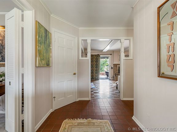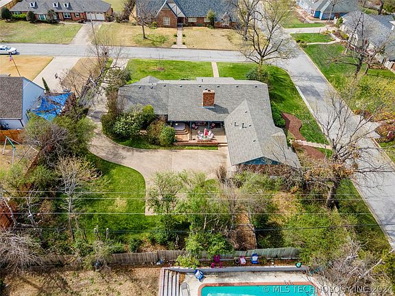 Charming 4 bed, 3.2 baths, 2 car ranch style home on corner lot, 1 block from Southern Hills C.C. Formal living & dining rooms, den with serving wet bar, kitchen with double ovens & electric cooktop. Large breakfast room and large laundry room with side entry door & half bath. Large bedrooms, walk-in closets and large hall cedar closet. Covered patio with built-in hot tub(new motor summer of '23), new roof Feb. '24, so. furnace & AC 2 yrs old. Sec. system & 3 cameras stay with home. Oversized 2 car garage with wall of cabinets.