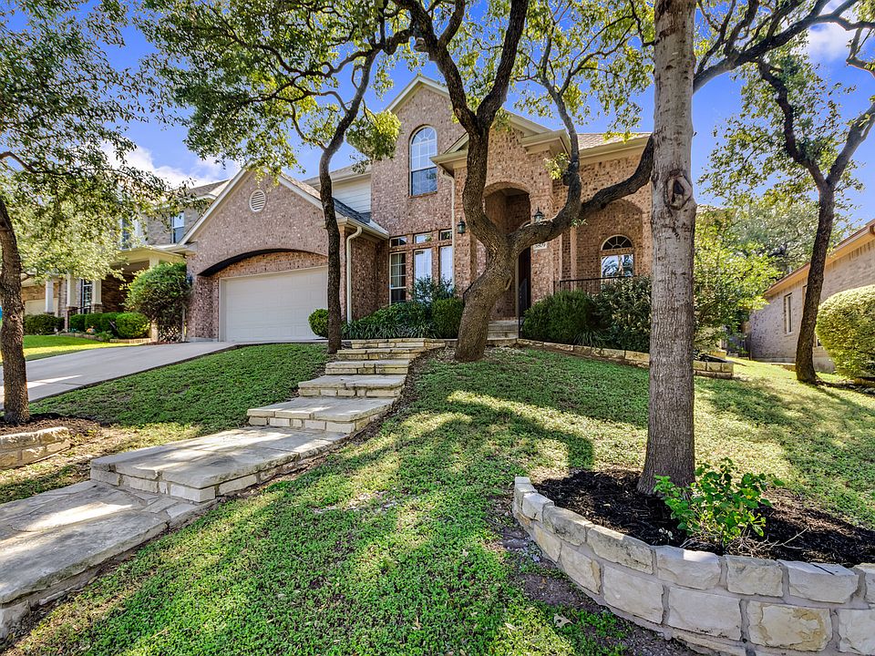Gorgeous 2 story brick home w/3 car tandem garage. Covered front porch. Lots of windows and natural light. Fantastic layout with soaring ceilings, dedicated office, upstairs game room, formal dining, and spacious family room with brick fireplace. Open kitchen with center island, granite counters and breakfast bar. 4 beds/3.5 baths, master on main. Crown moulding, art niches. Lots of added storage space in garage. Wood floors, new stainless steel appliances. Great yard with large, mature trees providing a canopy of shade to the front and backyard. Large stone back patio. Lush landscaping. Neighborhood private pool and park. Minutes from downtown, Hill Country Galleria & shopping. Don't miss this amazing home in the highly desirable Travis Country West! **If represented, will pay your buyer's agent/broker's commission** **One year of Home Warranty coverage included**