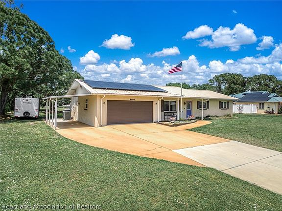 3-bedroom 2 bath home located in Spring Lake situated on a large half acre lot. This home features a 2-car garage, a carport AND a separate golf cart garage on the back of the home. The kitchen has white cabinets and the Sellers added on additional cabinets for plenty of storage space. The bedrooms are good sized, and all the windows are double pane impact resistant. It also comes with custom made poly carbonite hurricane shutters for the doors! This home has a metal roof and solar panels that will be paid off at closing! With a little TLC and work this home could be the one you have been waiting for!! Seller offering a $3,000 credit at closing towards new flooring with a full price offer. Make your appointment to see today.