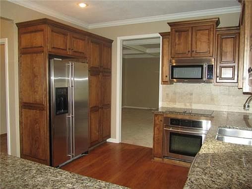 Cul-de-sac- level, treed, oversized & private w/ a deck viewable from 5 full length windows of hearth room kitchen w/ a fireplace. Custom cabinets w/ all the extras- granite counters,new lighting,SS Jenn Air appliances- its a WOW! New carpet downstairs, fresh neutral paint, updated light fixtures & wood floors. New Lennox HVAC, newer Anderson Windows - no expense spared. Spacious family room w/ 2nd fireplace. Hottest location in JOCO- walk to park,trails & schools & in between Prairie Fire & 119th Shops.