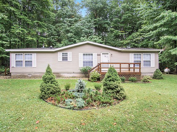 Hamlin Twp - This 1991 manufactured home has had one owner and has been very well maintained. There are 3 bedrooms and 2 full baths, spacious galley style kitchen, laundry closet, Large living room w/fireplace, dining room area and plenty of living space. Situated on a nice lot with woods behind it and Hamlin Lake public access 1/4 mile away at Wilson Park. Detached garage is a one car plus a workshop space and a paved driveway. Master bedroom w/ master bath has double sink vanity, tub and a separate shower. (replacement work for shower stall to be completed by new owner; some materials are onsite) Great opportunity at a great price.