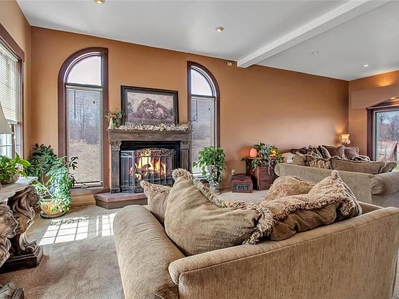 This custom home is unique & located on private 19.8 acres! Great views of expansive property. Built w/2x6 construction, many custom features, large palladium windowed 2-story foyer w/grand chandelier. LR/FR with WBFP (gas available), office w/built-ins, formal DR off foyer connects to kitchen w/Custom Maple cabinetry and granite island, large mudroom, wide staircase w/lg palladium window on landing allows view of rear property, two bedrooms share a Jacuzzi tub/shower bath, with access to a 14x14 2nd fl. patio w/great views, bright/open walkway overlooking foyer leads to master bedroom w/Jacuzzi soaker tub/walk-in shower, dressing/sitting area and large walk-in closet, 2nd floor laundry, 3rd floor with many possibilities. Come see this unique & outstanding home on this private acreage!!