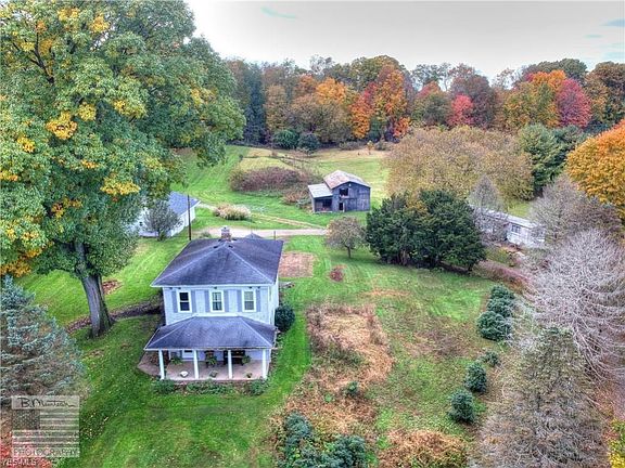 What a rare find! This beautiful home is nestled on a six acre homesite with one acre being wooded. Very charming kitchen with newer range and dishwasher and very large pantry, formal dining room that could also be a first floor den or family room, welcoming living room and two full baths complete the first floor. The second floor features four bedrooms. Two staircases, full basement, wonderful covered patio. 36 x 40 barn with hay loft plus an additional building. Free gas. City Water at Street.