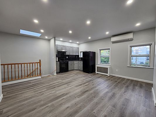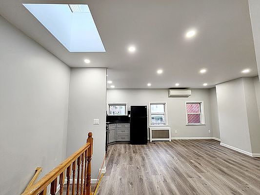 Be my first !! Less than 6 short blocks to Prospect Park and F & G trains station Brand spanking new Used to be a 2 bedrooms apartment Now a large 1 bedroom unit on 2nd floor of private home in quiet-tree lined block Bedroom fits king size bed Good closet space Super-spacious living room with kitchen Individual a.c/heat units in each room Full bath Wood floors Heat and hot water included High ceilings Skylight in living room Won't last !