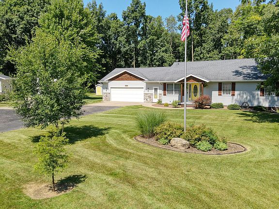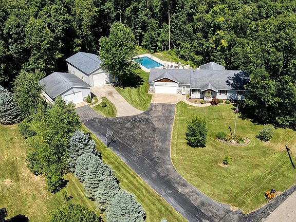 This is a must see 4 Bedroom, 4 Baths, Ranch on nearly 4 acres of land, Main floor laundry, Main floor master suite and bath plus a Jr suite. Spacious Kitchen opens to dining area and a 4 seasons porch. Living room is setup with a gas fireplace. Finished lower level has 3 seasons room off family room that walks out to fenced in back yard. Fresh paint and carpet throughout, Oversized attached garage w/door to fenced yard, 28X32 outbuilding plus NEW 28X40 Insulated building w/13' overhead door. Professionally installed landscaping with new underground sprinkling system. Come see this property today: