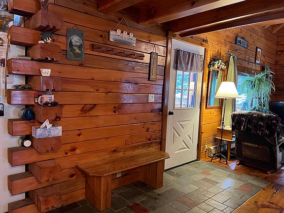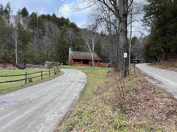 There is much to love with this home and property...it is well built, well cared for and tastefully done! Located a half mile off of the main road is this sweet log home. There is long brook frontage, large yard for garden and play space, and well maintained town gravel road. The sound of the brook will soothe you to sleep. Head up the stone steps and have a seat on the covered porch. What a spot for your coffee while taking in the morning light. Across the back side of the house is a large deck. The moment you walk into the house you will be drawn to the massive, stone fireplace from the floor to the top of the cathedral ceiling. Just imagine a winter evening in front of the fire after a day on the slopes or your snowmachines! The wood floors are handsome. The living room runs front to back on one side of the house. The other side is the kitchen/dining area, small first floor den, and full bath. Upstairs is the large primary bedroom. The lower level is a walkout with nice windows. The family room, second bedroom, and laundry room are on this level. There are two shop buildings for the car enthusiast, hobbyist, workshop, or even home industry. The location of this property is great...1/2 mile from trout fishing on the Black River, 4 miles to Singletons, 8 miles to Okemo for skiing and golf, 11 miles to the lakes, and if you are a snowmobiler, you can use the road to access the VAST trails a mile away. Don't miss this one! Showings start Sunday, December 4th.