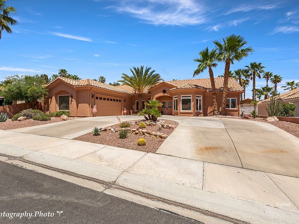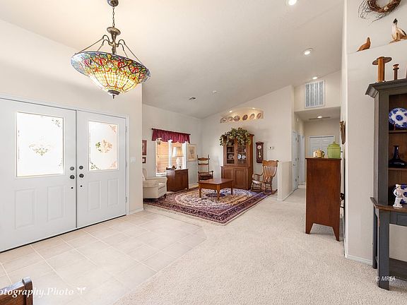 NEW VINYL PLANK, NEW CARPETING AND NEW GRANITE BEING INSTALLED. New pics will be added when remodel has been competed. NO HOA.....Located in Sante Fe Vistas Beautiful semi-circle driveway with Mediterranean Palms that make this entrance to the home "one to remember". Hop on the VRBO bus...yes you can use this home as a vacation rental when you are not in town. Custom designed home has front doors that are glazed glass with gorgeous vaulted ceilings that "peak" in the kitchen and dining area. Den has (3) large bay windows and the den has its own half bath. Oversized living room is delightfully refreshing for entertaining as it opens to the kitchen and dining room. Living Room has it's own access to the back patio. Dining Area has another door that opens out to "another back patio". Entire backyard was redesigned with new landscaping..."towering palm trees , waterfall, two large tiled patios, fully fenced and it faces north for year round outdoor enjoyment. Plenty of room to store trailers or razors..NO HOA RULES here. Den could be made into a 4th bedroom. Family room PLUS living room at this home....lots of room to gather. Light in entryway is excluded