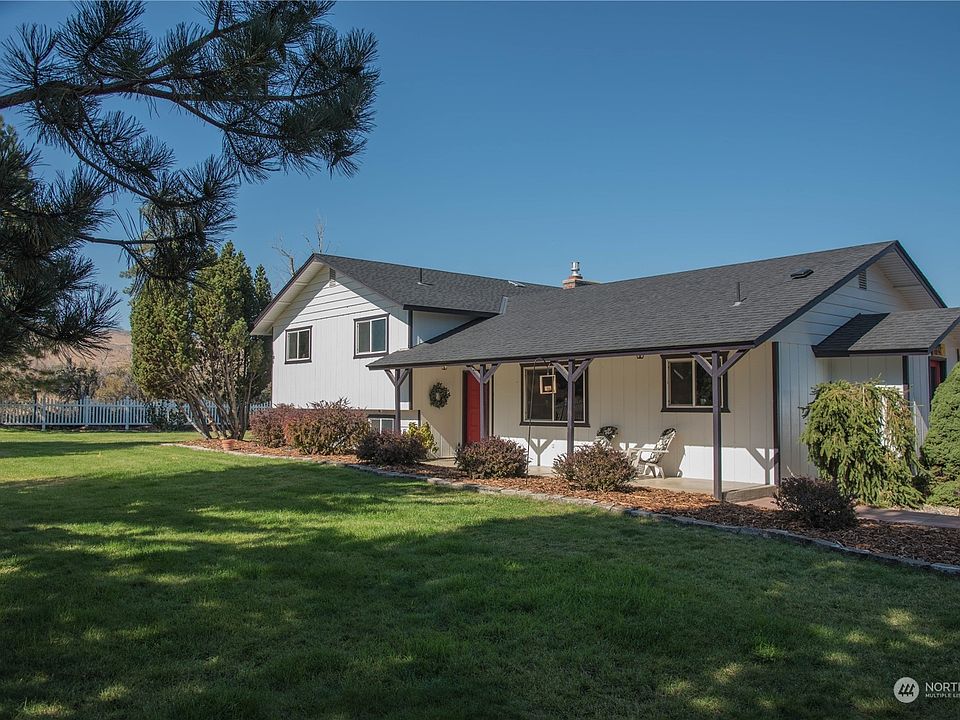 This Manastash area stunner sits on 3 acres at the end of the lane and is surrounded by natural beauty 365 days a year. The country kitchen is central to the home with broad counters, gas range and ample storage that opens to the living, dining and sitting rooms. Large living areas, gas fireplace insert, picture windows and outdoor decking with amazing views. The owners suite features private bath and closet. 3 additional bedrooms, 2 baths, family and utility room. Detached 2 car garage with workshop and separate 2 car utility storage building. Room for animals and your toys. Tall pines, mature landscape and Manastash ridgeline views over the south lawn and Mount Stuart peaks to the north make this property something truly special.