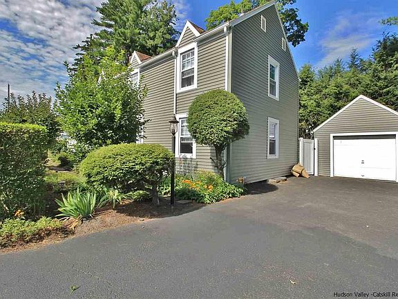 This unique and one of a kind fully renovated 2 story center hall colonial, reminiscent of Cape Cod and Nantucket, is in immaculate condition and move in ready! Situated on a large double lot with a privacy hedgerow and a yard featuring a beautifully landscaped haven with a rock garden and ornamental trees. From the two-car driveway, the crushed stone walkway takes you to a picket fenced garden and patio. Fencing continues to a dog run with artificial turf, through to the rock garden and large open yard. The home features 3 bedrooms with a master bedroom walk-out to a sun/morning deck under a retractable awning. The 1 ½ baths have recently been remodeled and upgraded. Living room features an inviting fireplace with natural gas logs and a lovely bay window overlooking the garden. A full dining room off the kitchen is a convenient setting for entertaining with a built-in liquor cabinet that is sure to please. The eat-in kitchen features a new stove, microwave, refrigerator, and dishwasher. Sliding glass door leads to the fenced crushed stone patio and dog run. A laundry/mudroom entry keeps things neat and clean with built-in cabinetry as well as a laundry sink for clean-up after gardening. The home has original hardwood floors throughout and features ceramic tile in the kitchen and main bathroom. A full basement, a portion of which is carpeted, features a bar for adult entertainment as well as a fun play area for the kids or grandchildren. The fireplace with mantel and electric log insert adds coziness and warmth on cold winter nights. Additional workroom with bench and storage shelves perfect for home projects. The property has two garages--one a double and the other a single (a gardening shop perhaps)--providing additional off-street parking. Other updates include: new attic, exterior insulation, and siding. Upgraded windows/door/sliding door/storm doors; Leaf filters on main house gutters with transferable lifetime warranty; Interior newly painted spring/summer 2020. BRAND NEW DECKING AND ROOF FALL 2020. This lovely house would also make an excellent AirBnB opportunity with central proximity to Uptown and Downtown Kingston while just a short distance to Amtrak/Rhinebeck and 90 minutes north of NYC!