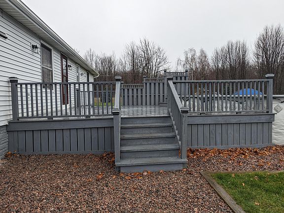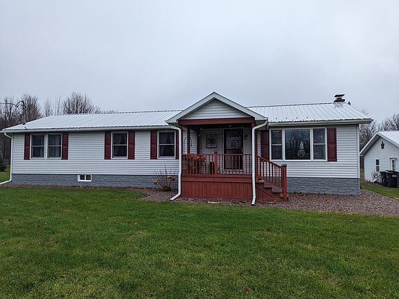 Meticulously maintained and upgraded home with new barn and acreage. This property consists of a 3 bedroom/2 bath home with an above ground pool and solar lighted deck, a 3 car garage and a 32 x 48 barn w/5 stalls. The barn has 100 amp service, a concrete floor and includes a heated tack room, anti-freeze running water and a hay storage loft w/hay elevator. The backyard has two tranquility ponds and a brook (Farrington) runs through the back section of the property. The main level of the home is tastefully decorated with fresh paint and beautiful flooring. The living room and dining room have vaulted ceilings and there is an eat-in kitchen with beautiful cabinetry. The finished basement area provides for a relaxing atmosphere with an indoor whirlpool, a full bathroom and also currently houses a theater space and an office area. The exterior of the home has also been recently painted to include the shutters, porch and pool deck. This property has plenty of berry bushes and apple trees and an abundance of wildlife. Enjoy the summer seasons relaxing by the pool or campfire pit area. This location is close to the school and village with local shops. This would make a wonderful family property to include your horses or plans for a hobby farm. This home and property are move-in ready!
