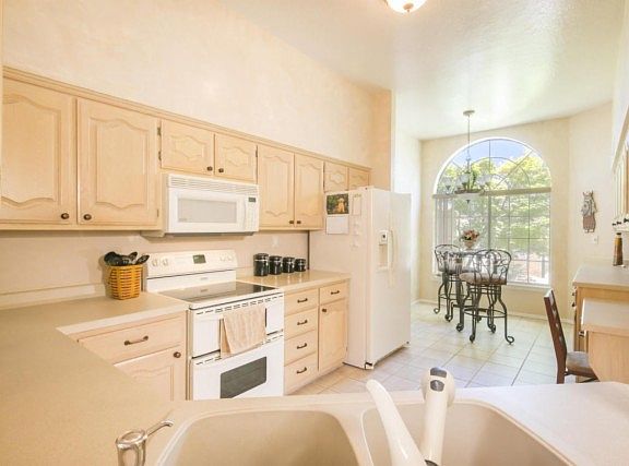 Exceptional property in 55+ gated community with NEW PRICE!! neutral tones, venetian plastered walls in Kitchen. Eat-in Kitchen, formal Dining and Great Room complete with fireplace. Refrigerated A/C. Good Separation between master and 2nd bedroom, 3rd bedroom also could serve as an office. Backs up to greenbelt with fountain view; great covered patio. Valted ceiling in common areas. Garage walls textured & painted--it's heated and cooled, but not in the square footage. This property is being sold furnished. Bring your toothbrush and a suitcase, unpack and relax. . .