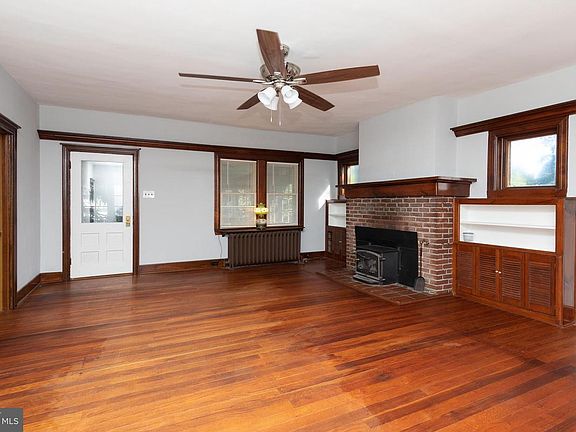 Charming Glenside ranch style home loaded with character. Nice corner property with mature gardens and plenty of outside areas for relaxing. A small deck leads you into the front sunroom that is loaded with windows. Enter into the large open concept living room and formal dining room area with beautiful wood floors, a brick fireplace with an insert, built ins, and ceiling fans. There is an updated eat in kitchen with white cabinets, stainless steel appliances and space for a table. A door leads you to the covered rear patio, a brick paver walkway, an open patio and the tiered yard with a storage shed. The main bedroom has a new bathroom with a stall shower and there are two additional bedrooms with built ins that share an updated hall bathroom with a tub. There is a basement from which you can enter the one car garage. Home has been freshly painted and has natural wood trim throughout.
