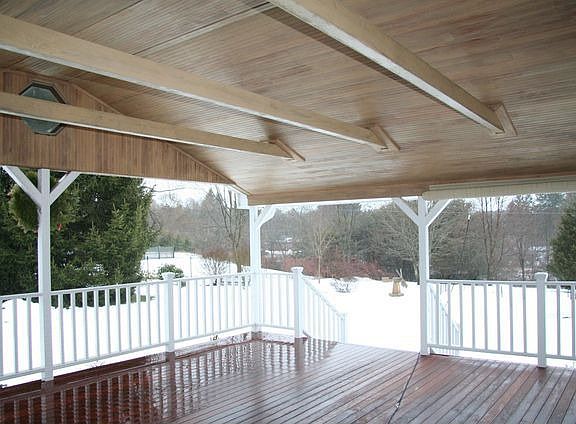 Stunning Expanded Ranch with an open great room with cherry kitchen cathedral ceilings, a beautiful floor to ceiling Fireplace. Sliders opening out to the patio. The main floor has all Gleaming Hardwood floors & Tile & Updated baths. The lower level is Finished with full windows in the Media game room. Beautiful woodworking through out. A huge Deck and an attached oversized 2 car garage All on 3 acres set well off the Road offering a feeling of an oasis while minutes away from everything .