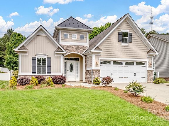 Wonderful one story home with open floor plan and lots of living space including home office and fabulous sun porch on the back of house overlooking pretty back yard. This home has a large great room with octagonal trey ceiling, nice breatfast area, stainless appliances including gas stove and refrigerator. Formal dining room opens to the foyer/hallway and is large enough for a table to seat eight people for dinner! The split bedroom floor plan is nice for guests or for roommates with two bedrooms and full bath close to the front of the house. The primary suite on the back of the house has two large walk in closets, and the bathroom has a garden tub, stand up shower, separate water closet and two separate vanity/sink areas. Recently replaced LVP flooring and lighting throughout. You will love this patio home section of Laurel Park with managed lawn care and just a nice community including 2 pools and tennis/pickle ball and various parks throughout. So convenient to everything!