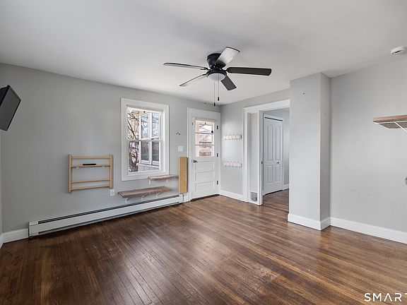 Welcome to this updated, energy-efficient home, located just minutes from Wesleyan University, downtown Middletown, restaurants, shopping, and the riverfront. With solar panels, a newer kitchen, and a surprisingly deep backyard, this property blends convenience, modern comfort, and value. The first floor offers a bright living room with hardwood floors, a large eat-in kitchen with white cabinetry, stainless appliances, ample counter space, and first-floor laundry, plus a generously sized primary bedroom suite for desirable one-level living. Upstairs are two additional bedrooms with great natural light, and the clean, divided basement provides excellent storage and workshop potential. Outside, the deep lot offers rare usable yard space-ideal for pets, gardening, entertaining, or future expansion-along with a storage shed and off-street parking. Move-in ready with low utility costs thanks to solar, this home is a fantastic opportunity for first-time buyers, downsizers, or anyone seeking a centrally located home with updates and charm.