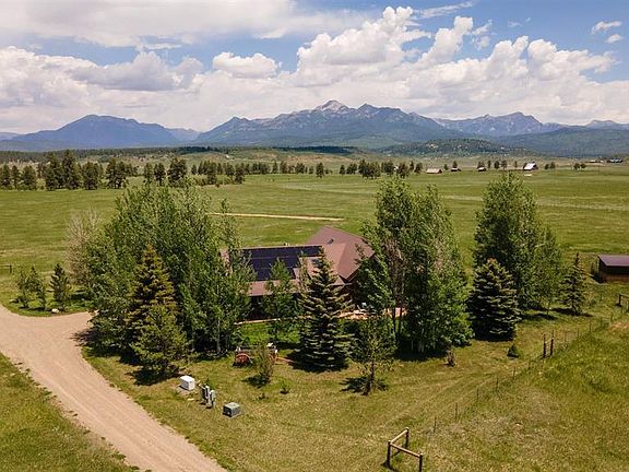 Welcome to your Colorado mountain home nestled on 40 acres of breathtaking beauty! This rustic yet luxurious property boasts a charming log-sided home with cedar exterior and river rock accents, perfectly complementing the natural splendor that surrounds it. As you approach, a covered porch guides you to the front door entry, offering a warm welcome to all who enter. Inside, you'll discover a spacious interior adorned with log posts and beams, creating a cozy and inviting atmosphere. The vaulted ceilings enhance the sense of space and airiness, while the wood burning stove adds both charm and practicality, keeping you warm on chilly mountain evenings. With 3 bedrooms and 2.5 bathrooms, including a primary suite on the main level, this home offers comfort and convenience at every turn. The primary suite features walk-out access to a concrete patio, where you can start your day with stunning views of the northern and eastern San Juan Mountains including Pagosa Peak. Indulge in relaxation in the jetted tub or separate shower, then retreat to the sunroom or home office for some quiet time. Entertain guests in style with a gourmet kitchen boasting granite countertops and plenty of storage space. Enjoy meals al fresco on the flagstone patio with outdoor firepit, or gather in the spacious loft for extra living space. For the outdoor enthusiast, this property is a paradise. A 4,500 square foot barn/shop provides ample space for hobbies and storage, while a large greenhouse, wood shed, and loafing shed cater to your gardening and livestock needs. The fenced and cross-fenced land is perfect for horses and livestock, with a chicken coop ready for your feathered friends. With a greenhouse, agricultural status, solar power and a Generac back up generator self sustainability is the name of the game. Located adjacent to the San Juan National Forest, adventure awaits right outside your door, whether you're hiking, horseback riding, or simply soaking in the natural beauty. Don't miss this opportunity to experience the ultimate Colorado lifestyle. With its stunning mountain views, abundant amenities, and endless possibilities, this property is truly a slice of mountain paradise.