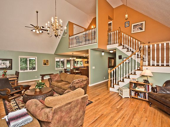 Private, peaceful & perfect as a serene mini-estate, micro-farm or thriving turn-key Airbnb on 6.63 acres. Tranquility beckons across a bridge over rushing Flat Creek & sunny, level pasture up to a soothing sanctuary nestled amid naturalized gardens & woodland. Vaulted ceilings, soaring windows, well-appointed kitchen, 2 story fireplace, secluded deck with hot tub & leafy shade that reveals winter views will restore mind, body, spirit in every season. Fresh exterior staining /interior painting, many system upgrades, 6-year old roof & meticulous maintenance further reduce the stress of practical concerns. Entertain in stylish comfort: main level living, upper en-suite with sitting area, lower flex room has full bath, mini-kitchen, separate entrance OR continue operating as Airbnb - most of the furniture conveys. Pasture has separate spring-fed well, barn & is perc-tested for additional septic. This special gem is shown by appointment. Please, no drive- ups.