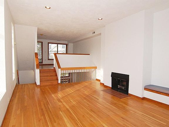 This dramatic multi-level contemporary home backs up to the Larchwood neighborhood and boasts beautiful views from the front of the historic gate of Mount Auburn. Highlights include three levels of open living space with lots of windows, hardwood floors throughout, soaring cathedral ceilings, central A/C, and a large one car garage. The first floor features a large kitchen equipped with a newer stove and vent and dishwasher, Newer fridge, a dining room, powder room, and direct access to the large private backyard. 2nd floor includes a spacious study and living room with a decorative fireplace. 3rd floor includes a generous MBR en suite as well as a bedroom and bath. Lower level garage offers a laundry area, parking and storage. The interior has been freshly painted and refreshed. 1 car garage parking, 2nd spot in driveway. Located within proximity of Fresh Pond which includes a beautiful walking path, municipal golf course, playground. Close to Harvard, Mt Auburn, Mt Auburn Hospital, Huron Village, Watertown, and Bike path. Easy access to public transportation, Red Line Alewife T stop is nearby. (Photos of vacant unit taken before upgrades/updates prior to tenants move in. Second floor to be painted with some updates and repairs) One month broker fee. Lease to end is summer months subject to renewal terms. Pets negotiable on a case by case