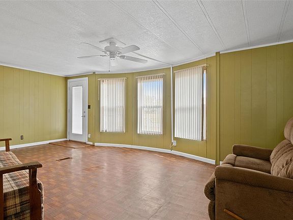 Here is your chance at a nice corner lot property with 3 bed, 2 bath, with a detached garage in Ashley. This 1344 sq ft Manufactured home will require cash or a conventional loan only. The house is attached to a block foundation and is strapped down. Make sure your lender can do manufactured home loans if you are doing the conventional loan route, not all do them. The property is being sold "As Is". The house has a split foyer concept. Meaning Master suite on one side while the other 2 bedrooms are on the other side of the common areas. The rooms in this home are living, dining, kitchen, nook, master bed, master bath, 2 more bedrooms, the second full main bath, & laundry room. Outside the living space there is a detached 24x30 garage. The current owners built a storage/hoppy area inside the garage. The new owners could remove it if they needed/wanted more garage space. The home sits on the end 2nd St on the North end of town. Set up your showing to see this one in person.