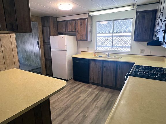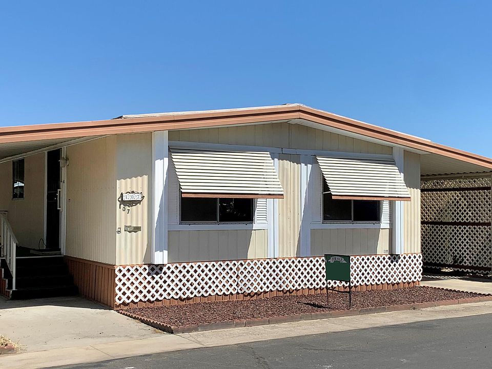 Don't miss out on this opportunity to own a home inside Dinuba Downs MHC a 55+ community. Great corner location. This 2 bedroom 2 bath home has been updated with new flooring. Kitchen features ample storage and counter space along with gas stove, refrigerator and dishwasher. Dining room has a bult in hutch. Home has central heat and air. Call today to schedule a showing.