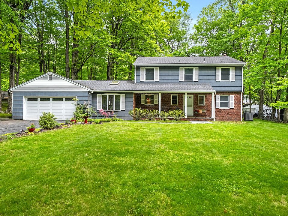 Sitting pretty in Blauvelt! This 5BR/3BA colonial on just over half an acre on picturesque N. Greenbush Rd has everything you'll need and then some. This home has been meticulously maintained throughout and features family room with cathedral ceilings, skylights and built-ins, living room with wood-burning fireplace, large master BR, two updated full baths, ductless a/c and 2-car garage. Most rooms have hardwood floors which have just been expertly refinished! Full basement has laundry room and lots of additional space. Nothing to do but move right in!