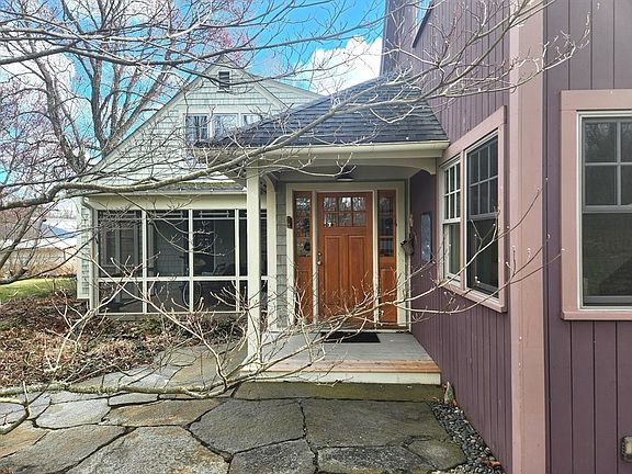 Great curb appeal! This charming expanded Cape high on "the hill" with views to the South, enjoys a peaceful setting, yet is just minutes from the center of Amherst and Belchertown. The original house was fully renovated and added to, doubling its size, in 2008. Natural finishes, quality fixtures, custom built-ins and artistic details define the new and improved spaces. Natural daylighting and inspired colors enliven the interior. The new entry, with beautiful stone floor leads to a large and serene study with built-ins, a desk alcove and french doors framing the view of the hills beyond. This bonus space could be ideal for many uses, including a 1st flr bedroom. There are three 2nd flr bedrooms, each with walk in closets. Further amenities include: three porches (one screened), a goshen stone patio, lovely gardens, a 1st flr laundry, a working wood fireplace, plenty of storage, a pigeon cote and a stream running through the property. Offer Deadline Weds, 4/30/25 at noon.