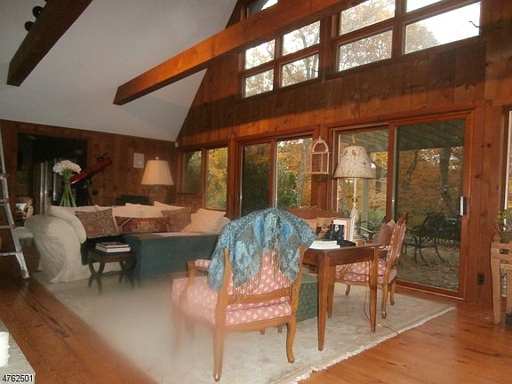 Escape the ordinary! meander down lane W/flowering pear & weeping cherry trees. to Country French retreat. wide plank flrs,beamed Great room,raised hearth stone f/pl.Flr to ceil'g windowand sliders connect you to Mother Nature on 44 ft trellis covered deck.Center isld kitchen w/marble flr has private outdr veranda.Spec'l x'tras are:cust. sauna, detached Barn Solar panels for electric savings and many more surprises in this one of a kind custom homestead!