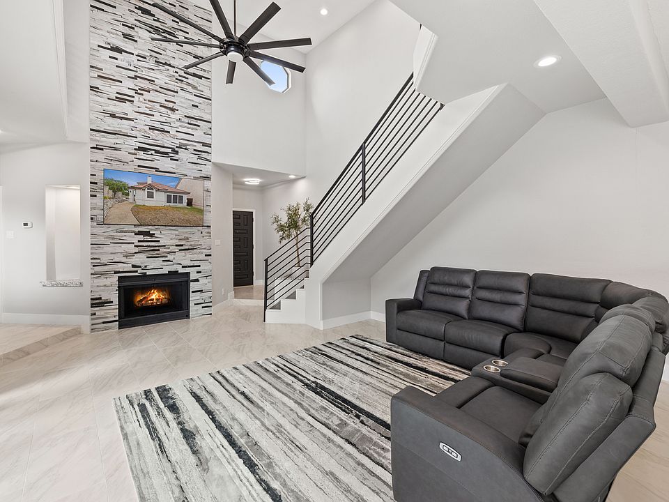 EXTREME HOME MAKEOVER in the heart of Lakeway! Sophisticated modern architecture with stylish, luxurious finish outs. The open floorplan offers a 2-story great room with a marble ledger paneled fireplace, formal dining, gourmet kitchen with breakfast area, 2 master suites with luxurious baths and walk-in closets. Upgrades galore include new flooring - porcelain tile and luxury vinyl plank, paint both inside and out, granite and marble countertops, lighting, cabinetry, hardware and stairs/rails. Features include a wet bar, wall of windows, custom fixtures and a 3-car epoxied garage. Sit back and relax on the spacious patio with multiple lounge areas and a large privacy wall or enjoy your morning coffee from the master balcony upstairs with a hill country view. You will love the beautiful setting of this gated Villa Mia community nestled behind a large stucco wall for ultimate protection and privacy. This home is just a few minutes from Lakeway City Park which offers public lake access and miles of trails for biking or walking through the park's lush landscape. Landlord prefers end of June/early July move-in and a lease term of 2 years. Pets will be considered on a case by case basis. This is a MUST SEE!