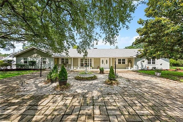 Come See this BEAUTIFUL, CHARMING and SERENE home on 2.7+ private acres backing to Doubloon Bayou with beautiful wild life, just minutes from hospitals, shopping, restaurants and I-10. ACROSS 2 SCHOOLS. This spacious property has a open concept living area that offers 4.5 updated bathrooms, 4 bedrooms with a optional of 5th bedroom 23 X 15, 2 fireplaces, no carpet, and a sauna. The updated kitchen features granite countertops, newer appliances and a sliding doors overlooking the pool. Recent upgrades include a new roof (2024), new windows, owned solar panels, updated electrical, fiber optic internet, 2 car garage, with a gated driveway. Enjoy this tranquility outdoor living with an in-ground pool, a large pavilion, and lush landscaping with producing fruit trees, fig, citrus, persimmon, kumquat, blueberries and more. Ample parking for RVs and boats makes entertaining easy. House has Generator that is installed to electrical box outside.