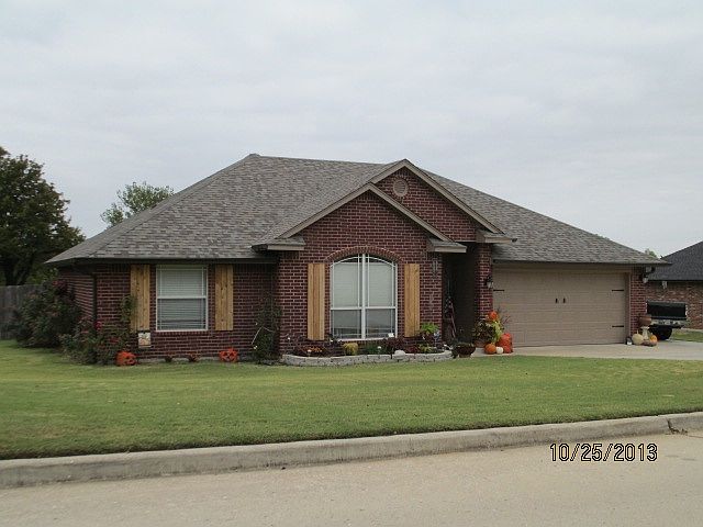 Beautiful family home, located in excellent Choctaw School District, 14 miles from Tinker Airforce Base. 1/2 acre lot, stockade fenced backyard. House well cared for with updated interior colors, tiled kitchen/dining room floor. Carpet through out remainder of house. Kitchen appliances only 2 years old (Samsung stainless steel & matching). 3 bedroom, 2 full bath, wood burning fire place, heat and air unit less than 2 years old. 2 car garage. Detached man cave (or woman cave, home office) 256 sq. ft . wired w/220, French doors, wood floor. Huge patio with electric access. This is an excellent family home to call your own.