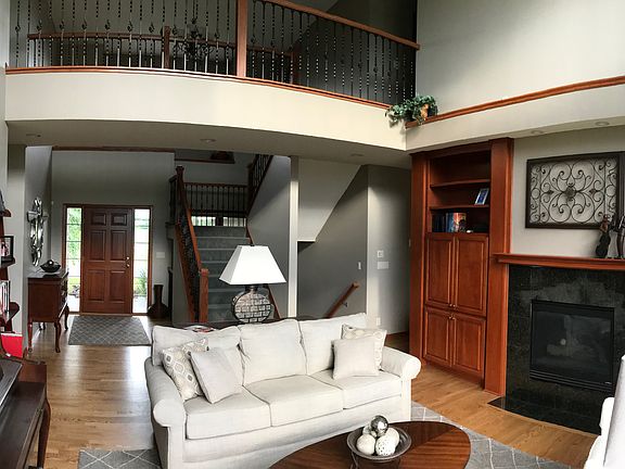 Magnificent 5-bed, 4-bath home with incredible views of the 16th fairway and green in the nationally acclaimed Somerby Golf Community. You are greeted by a stunning two-story open ceiling foyer and living room with beautiful hardwood floors, luxurious cabinets and built-ins, 2-sided see through gas fireplace, sunroom with tile floor; kitchen has stainless-steel appliances, granite counters, tile backsplash and big center island. The Master is its own private retreat with a private bathroom with jetted tub, separate commode and w/in shower, dual sinks and large w/in closet. There is a catwalk with amazing views on the upper level that spans between the two bedrooms and full bathroom. Fully finished w/out lower level has 2 bedrooms, full bathroom, wet bar, large family room with more built-ins around a gas fireplace and a home office with great views of the golf course. The maintenance free deck and patio provide great outdoor living space while allowing you to enjoy the beautiful views.
